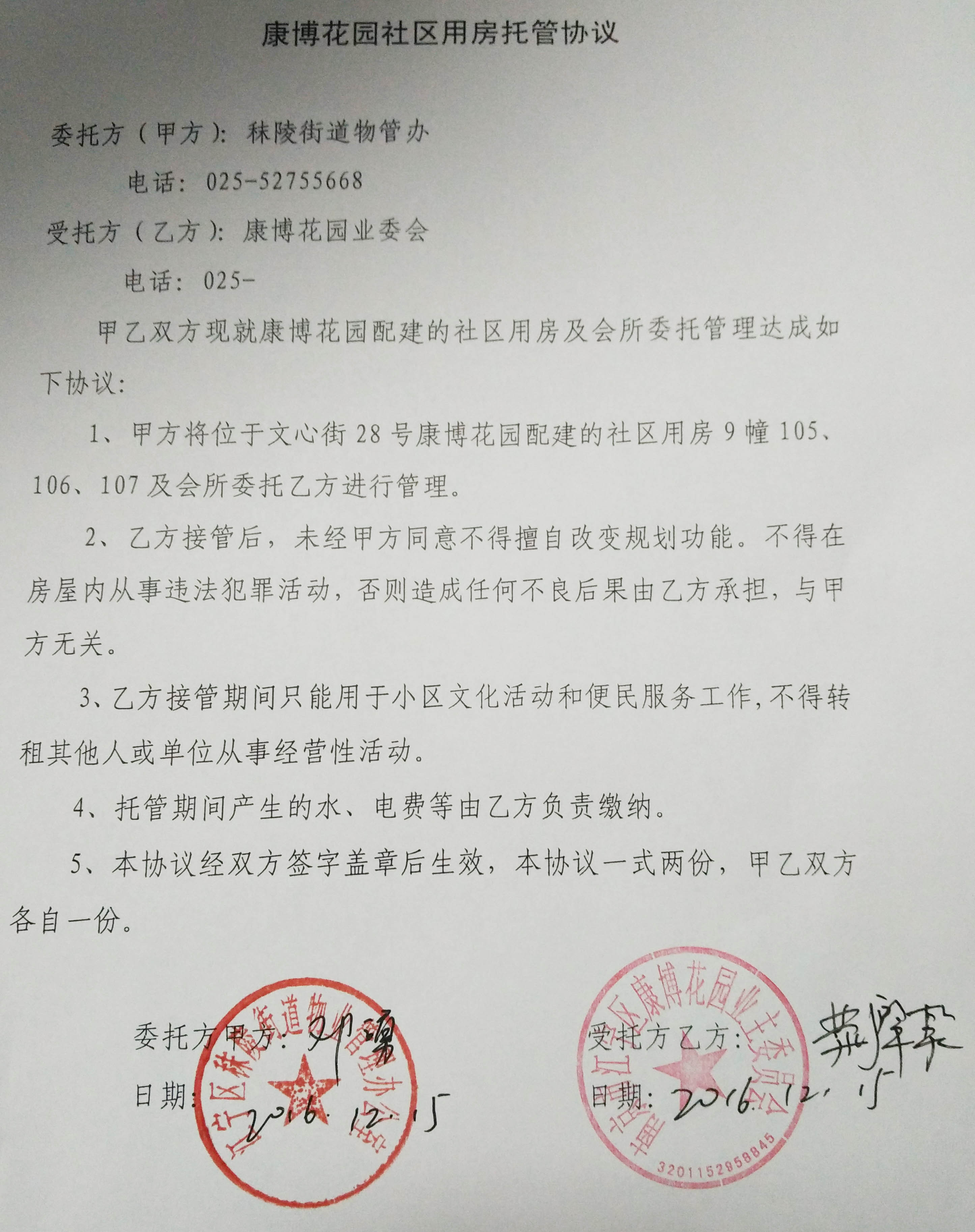康博花园社区用房托管协议